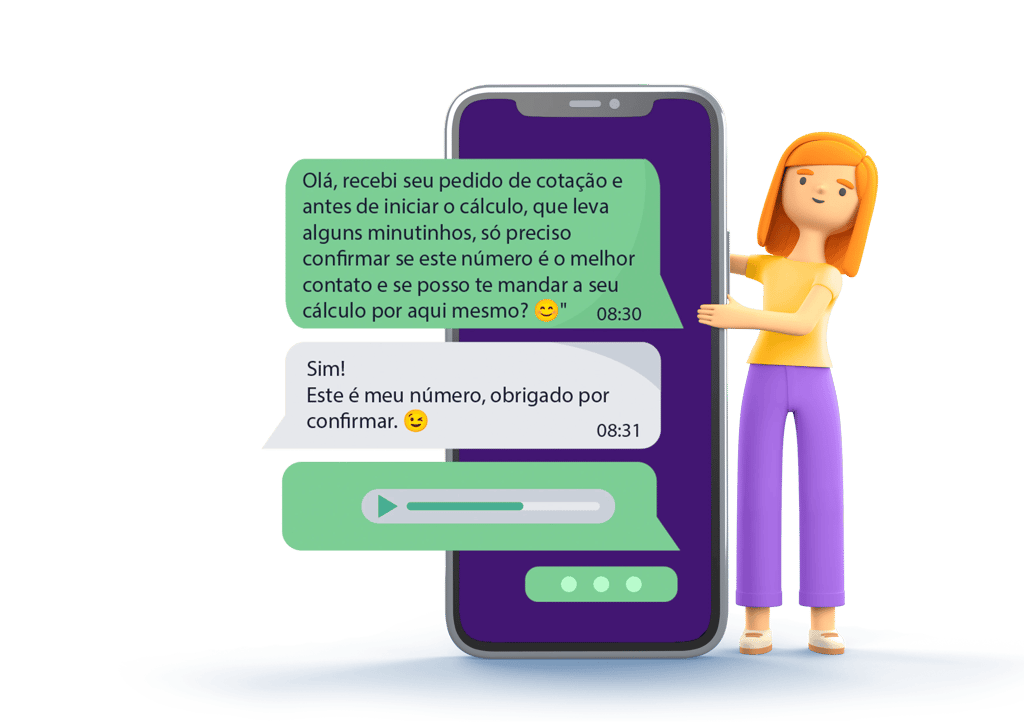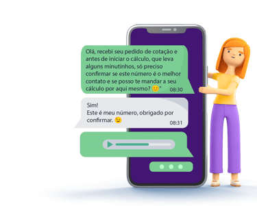 Acesse a área de cotações com um clique, escolha o tipo de seguro que deseja e preencha um breve formulário. Em poucos segundos, sua solicitação já está a caminho das seguradoras parceiras. Se preferir, envie tudo via WhatsApp e receba a confirmação sem sair do aplicativo que você já usa no dia a dia.