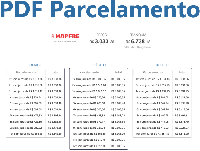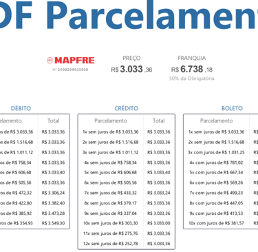 3° Na página 4 - colocar os valores das franquias (atenção: para pegar somente as informações necessárias)